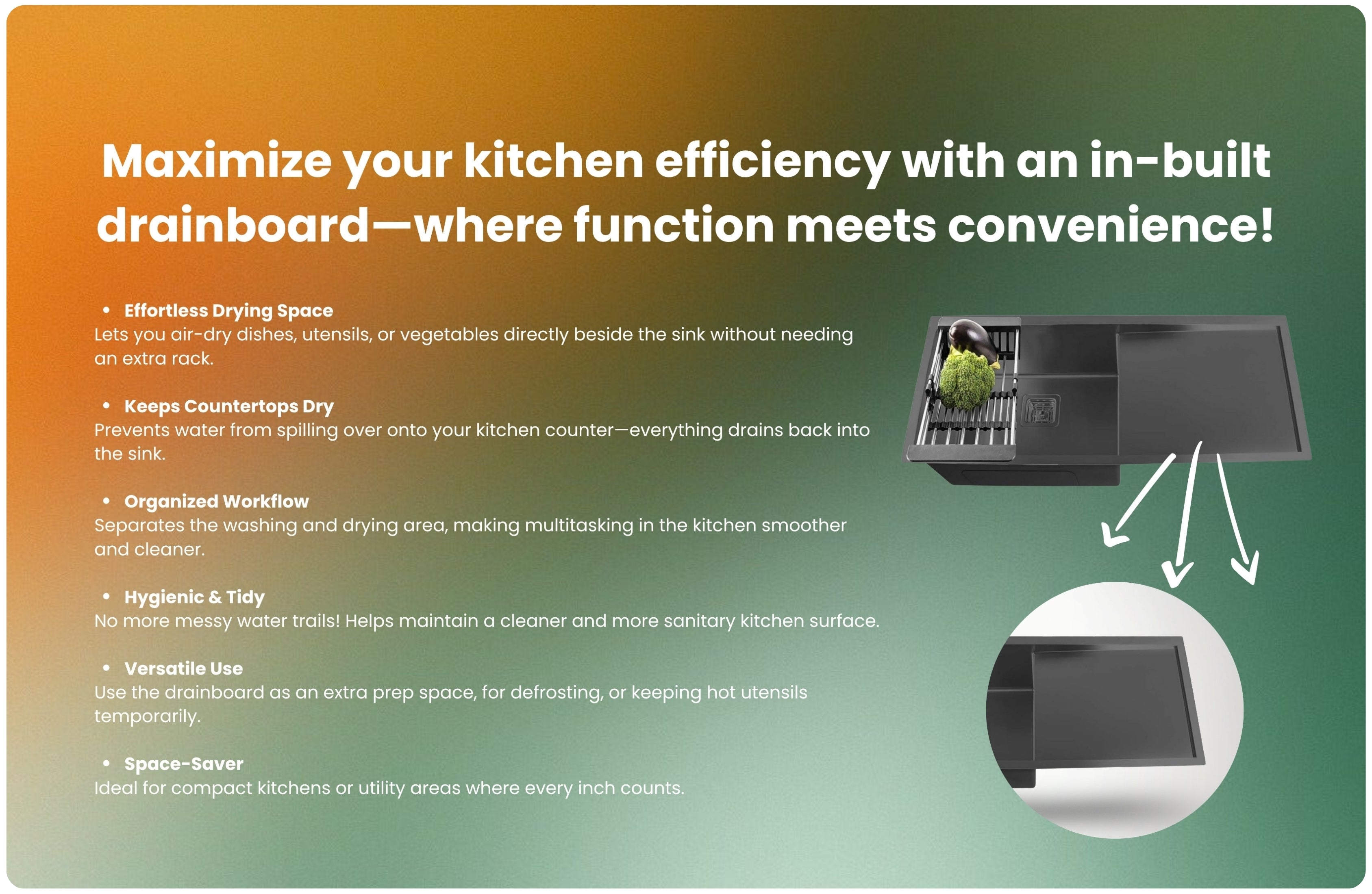 Single Bowl With Drainboard Premium Black